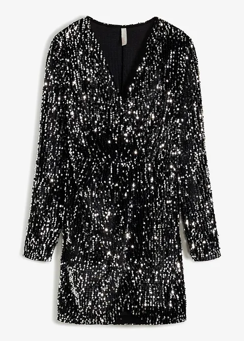 Paillettenkleid aus softem Samt in schwarz von vorne - bonprix