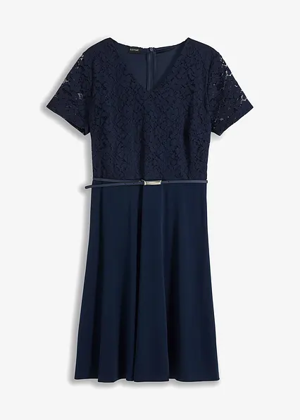 Elegantes Kleid mit Spitze im Oberteil und Gürtel mit Accessoire-Verschluss