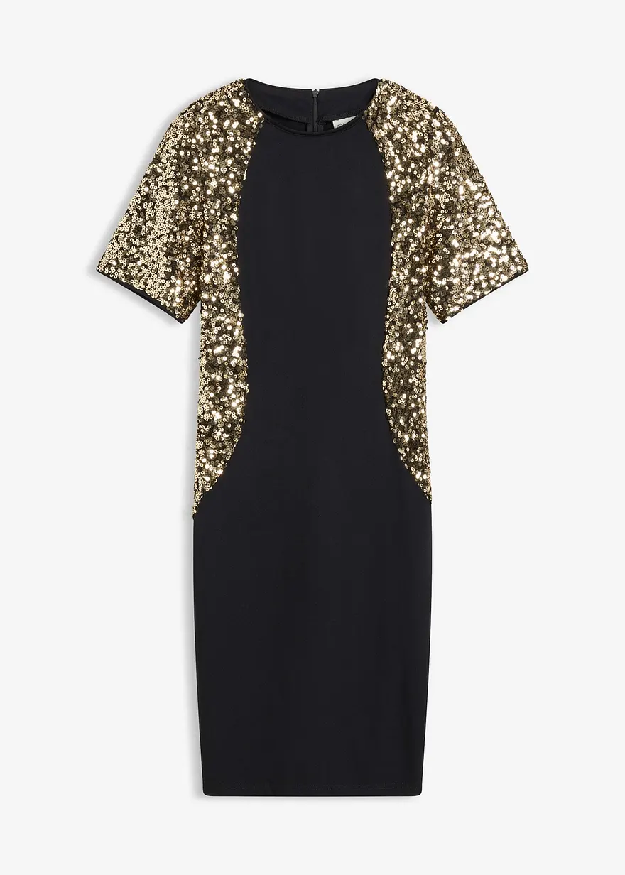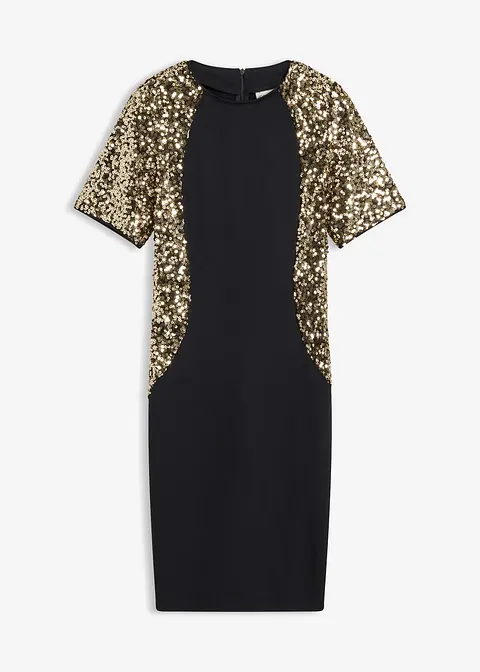 Minikleid mit Pailletten in schwarz von vorne - bonprix