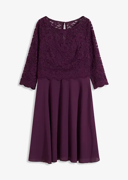 Minikleid mit Chiffon-Rock und Spitzen-Oberteil mit Muschelsaum