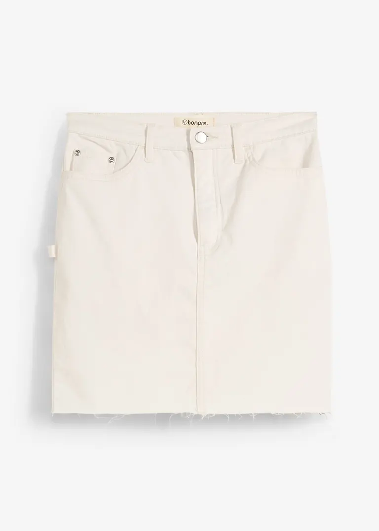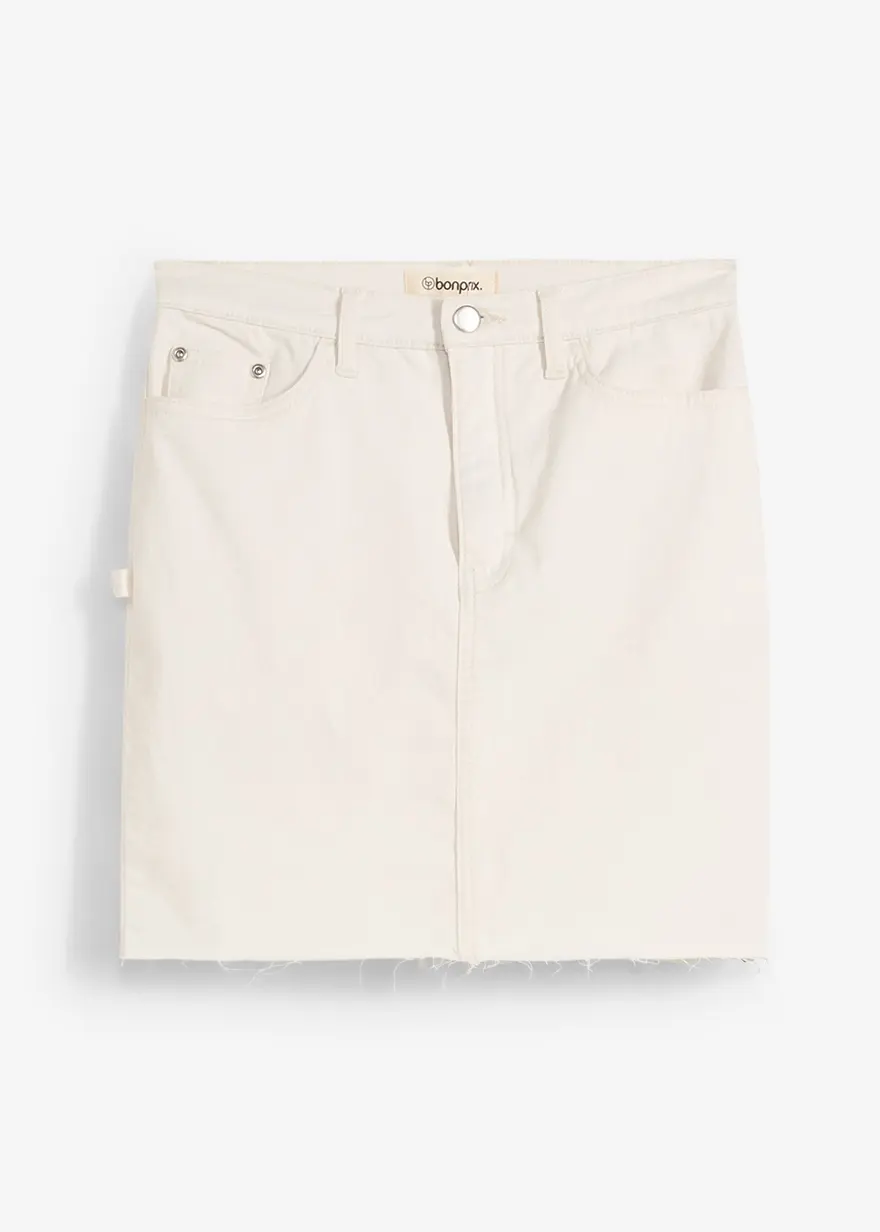 Modischer Minirock aus elastischem Baumwoll-Mix mit ausgefranstem Saum