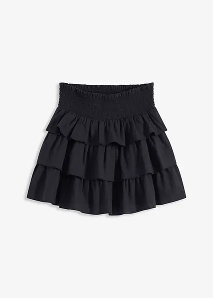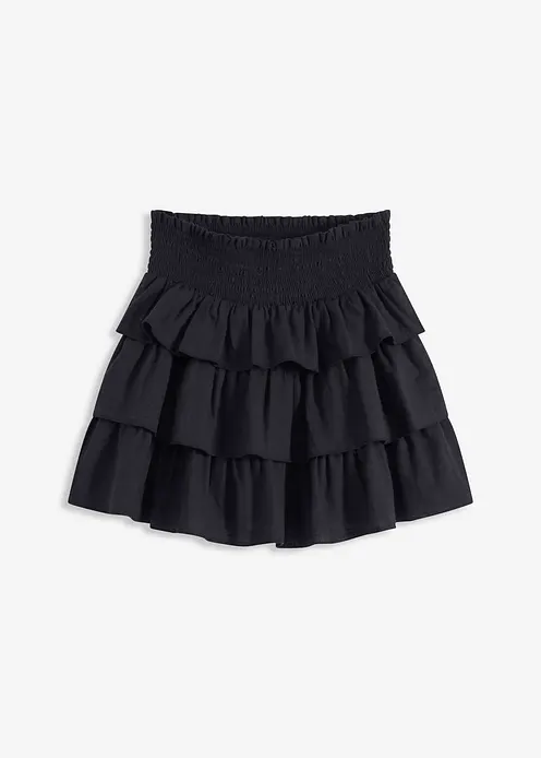 Modischer Minirock mit Smok und Volants aus reiner Baumwolle