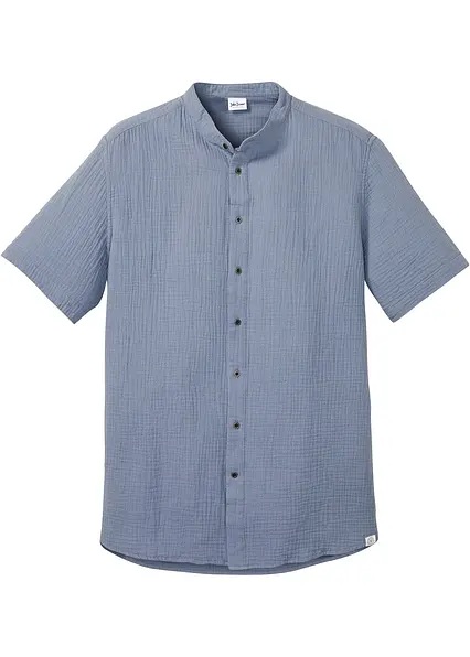 Modisches Musselin-Kurzarmhemd mit Stehkragen