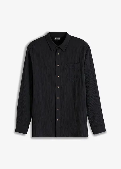 Musselin Langarmhemd aus reiner Baumwolle in schwarz von vorne - bonprix