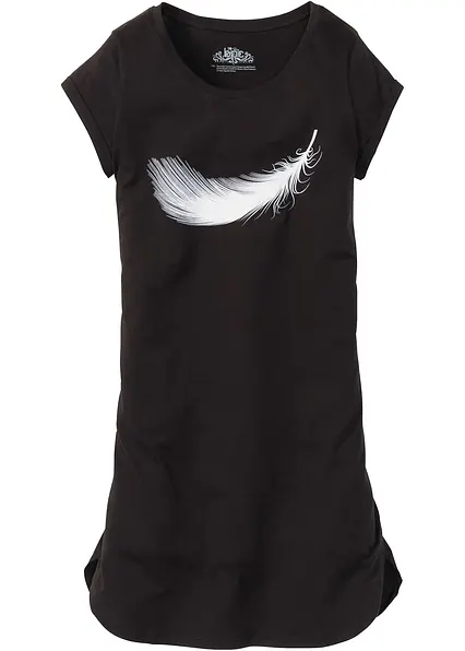 Mit dem locker sitzenden Schnitt und dem hautfreundlichen Material präsentiert sich das Longshirt mit kurzen Ärmeln als attraktiver Begleiter für erholsame Nächte und entspannte Freizeitstunden.Besonders hübsch wirkt der weite Rundhalsausschnitt. Mit der geraden Form und dem gerundeten Saum bietet das Modell viel Tragekomfort. Das Nachthemd ist mit einem traumhaften Feder-Motiv bedruckt.