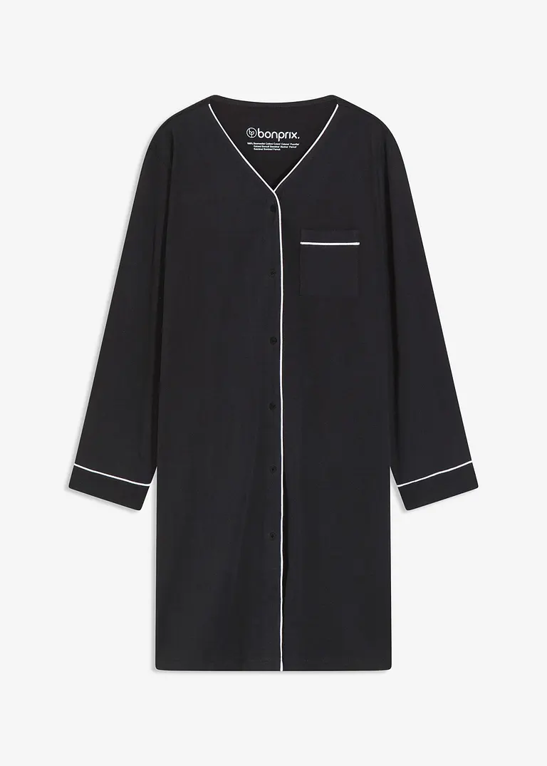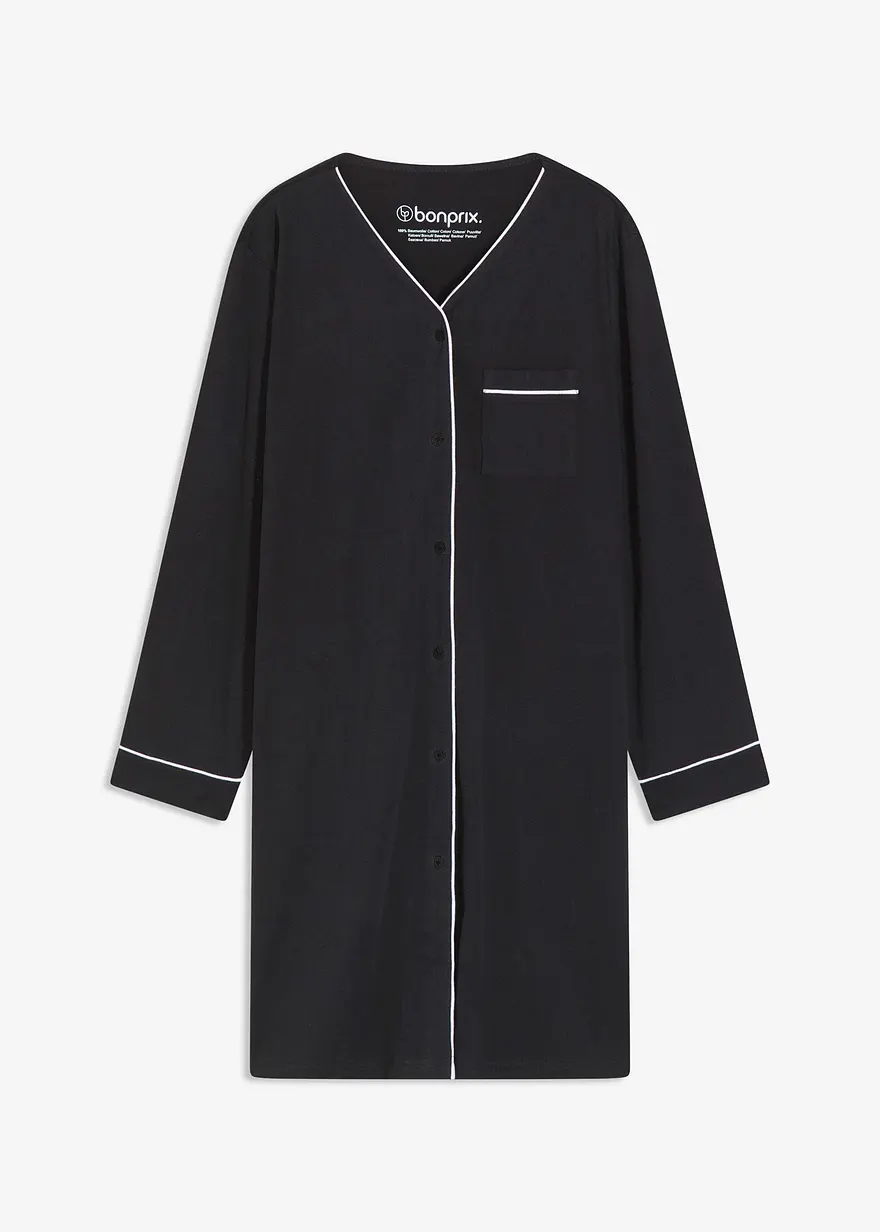 A-förmiges Nachtkleid mit weiten Ärmeln und Knopfleiste sowie einer Brusttasche