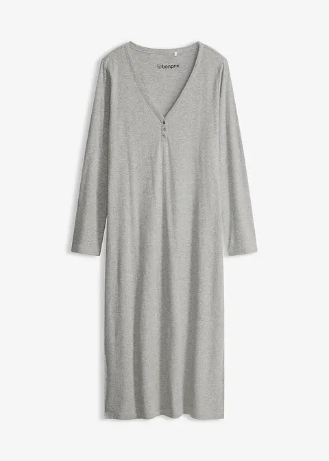 Langes langärmeliges Nachthemd mit V-Ausschnitt und hohen Seitenschlitzen