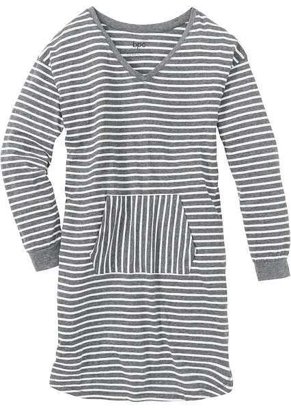 Dieses Nachthemd schenkt Frauen perfekten Komfort und schöne Träume. Der lockere Schnitt lässt viel Bewegungsfreiheit und das weiche Material ist absolut hautsympathisch.Optisch punktet das Hauskleid mit einem modernen Streifendesign sowie einer praktischen Känguru-Tasche auf der Vorderseite.
