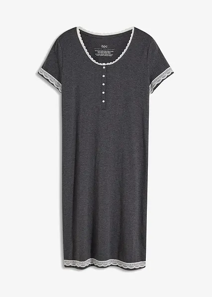 Nachthemd mit Knopfleiste und zarter Spitze in grau von vorne - bonprix