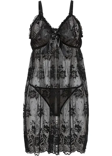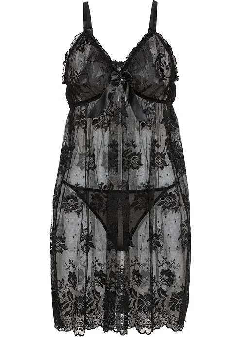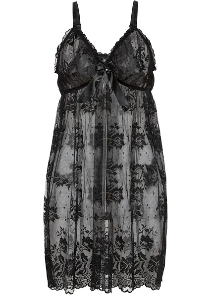Verzaubern Sie Ihren Liebsten! Dieses zarte Negligé umspielt Ihr Kurven und lässt sie sinnlich durchscheinen. Die romantische Spitze setzt Ihre Kurven perfekt in Szene und eine üppige Schleife ziert Ihr Dekolleté. Kombinieren Sie das Negligé mit schwarzen High Heels und lassen Sie die Nacht zum Tag werden.