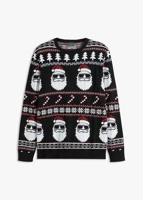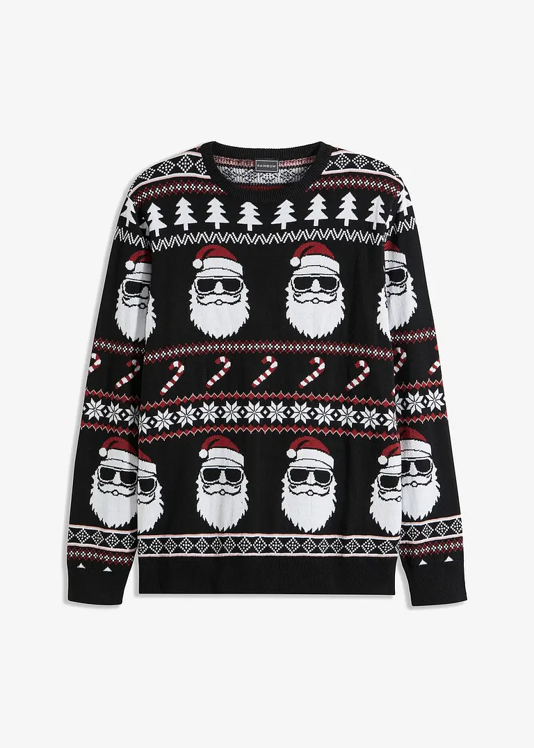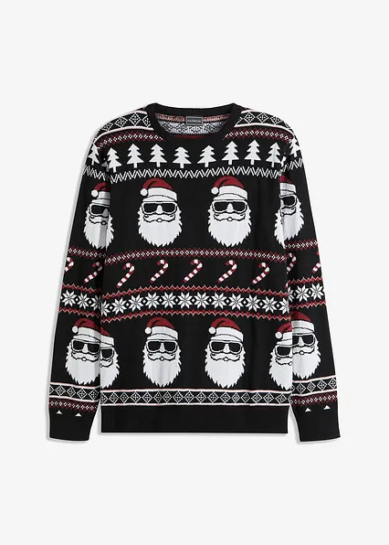 Norweger-Pullover mit recycelter Baumwolle in schwarz von vorne - bonprix
