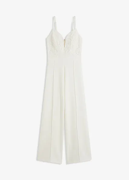 Modern und feminin: Overall mit Trägern aus strukturiertem Crepe im Unterteil und Spitze im Oberteil