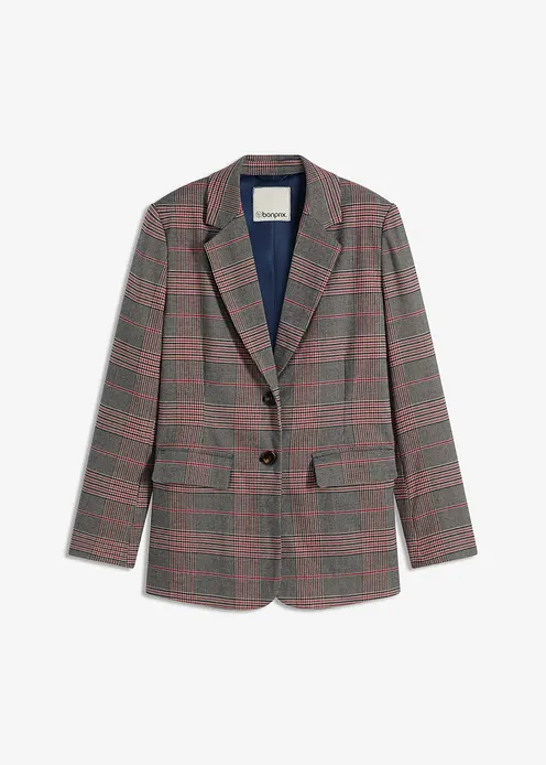 Einreihiger Blazer mit stark betonter Schulterpartie durch Schulterpolstern und Pattentaschen
