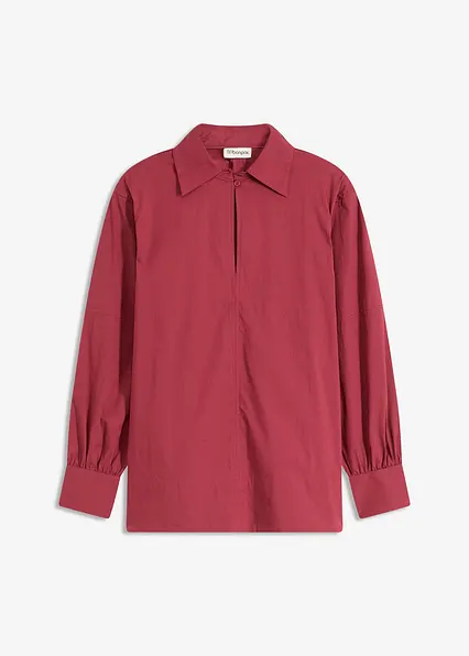 Oversize-Bluse mit Kentkragen und Schlüssellochöffnung mit Knopf vorne
