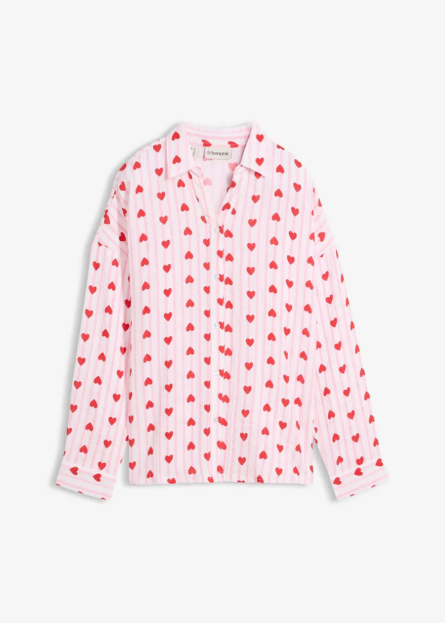 Modische Hemdbluse aus weichem Musselin mit Herzen