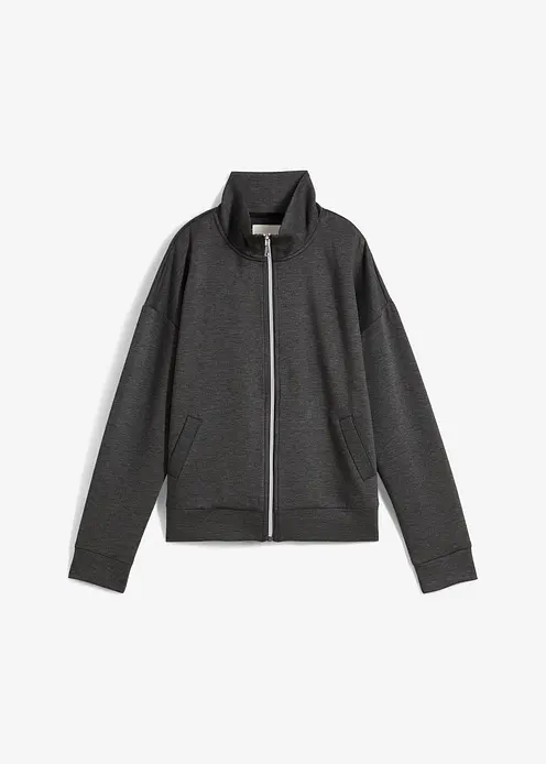 Oversize Jacke aus Scuba mit Stehkragen, Frontreißverschluss, überschnittenen Schultern und Leistentaschen vorne