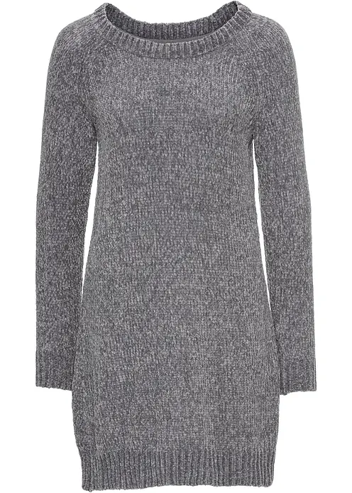 Das Kleid begeistert mit seinem kuscheligen warmen Strick und Bündchen aus Rippe an den Säumen und am Kragen.