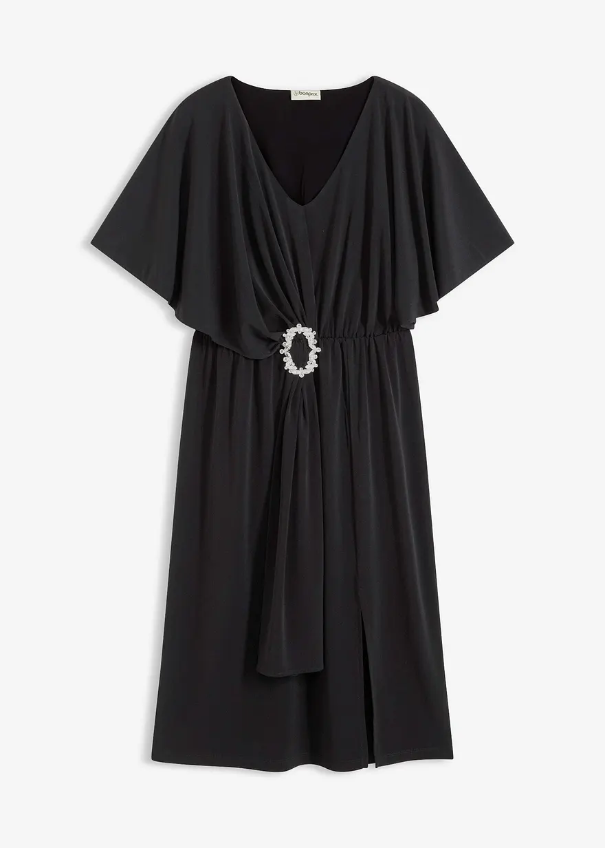 Oversized Kleid aus feinem Jersey mit Schmuck-Schnalle in der Taille