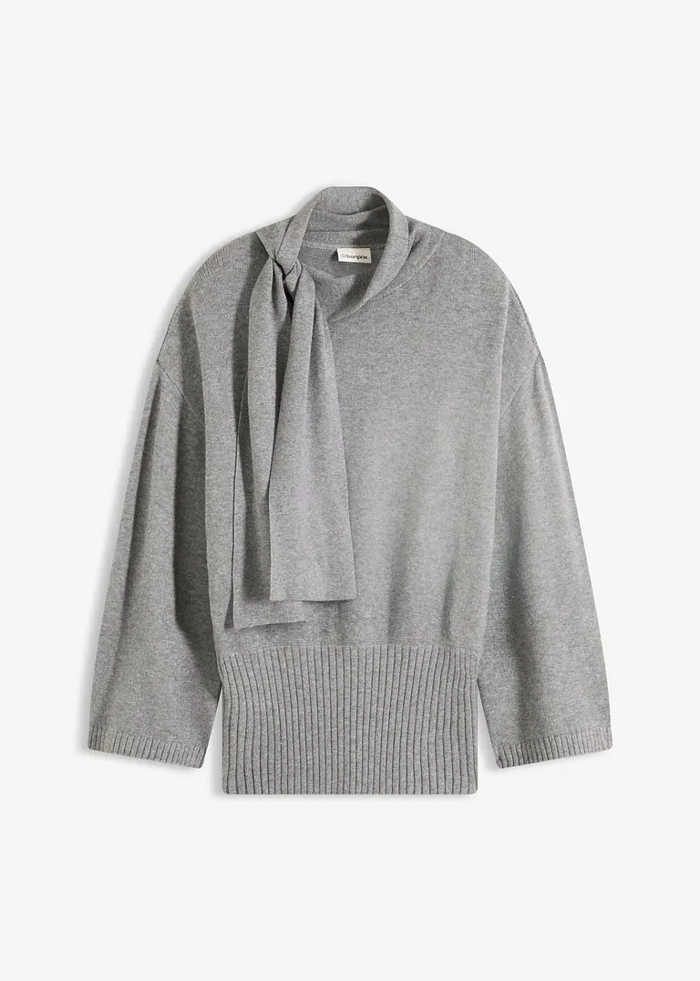 Oversize-Pullover mit breitem Rippbund und Schaldetail am Hals