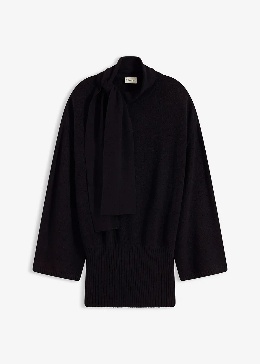 Oversize-Pullover mit breitem Rippbund und Schaldetail am Hals