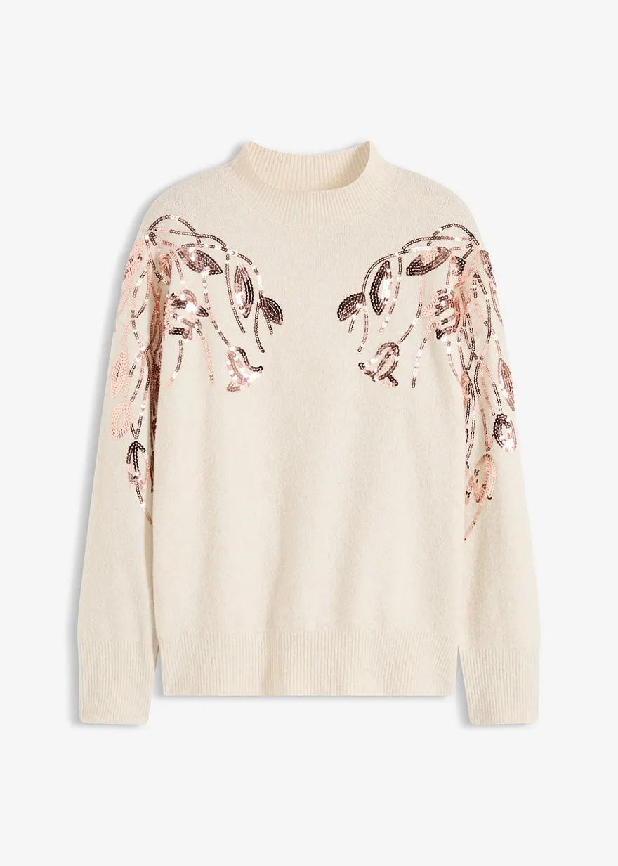 weicher Oversize-Pullover mit dekorativer Pailletten-Applikation vorne und am Ärmel
