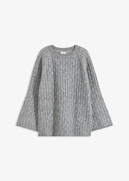 Weit geschnittener Rundhalspullover mit Zopfmuster