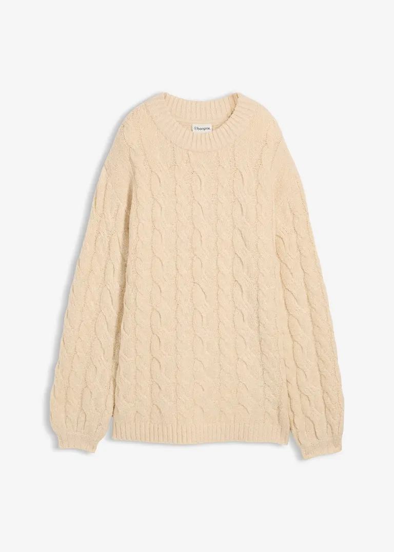 Oversize-Pullover mit Zopfmuster