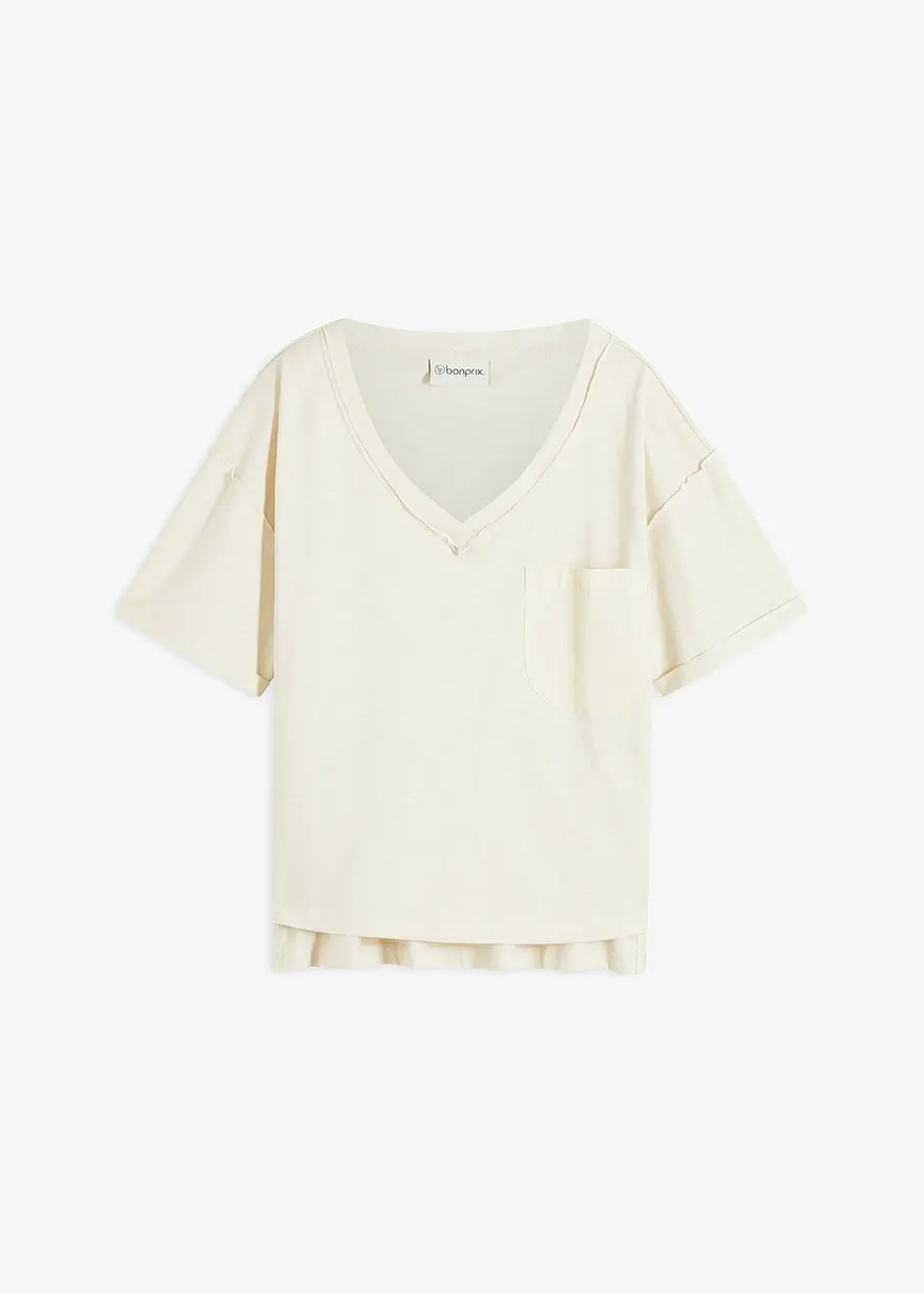 Trendiges Oversized T-Shirt mit V-Ausschnitt und aufgesetzter Tasche