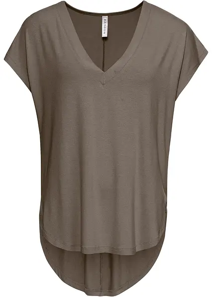 Auf den ersten Blick ist dieses coole Oversized-Shirt recht schlicht, auf den zweiten punktet es mit angesagten Schnittdetails: Das stylishe Modell begeistert mit einem tiefen V-Ausschnitt und einem abgerundeten Vokuhila-Saum. Die seitlichen Schlitze sorgen für Bewegungsfreiheit und einen lockeren Sitz. Besonders gut lässt sich das legere Shirt zu Culottes und Cropped-Jeans kombinieren.