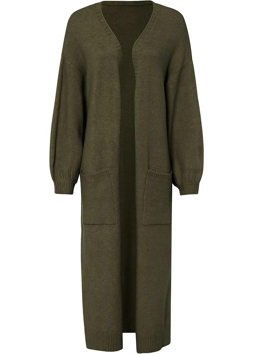 Oversize-Strickjacke in Midilänge in grün im Look von vorne (Totalaufnahme) - bonprix