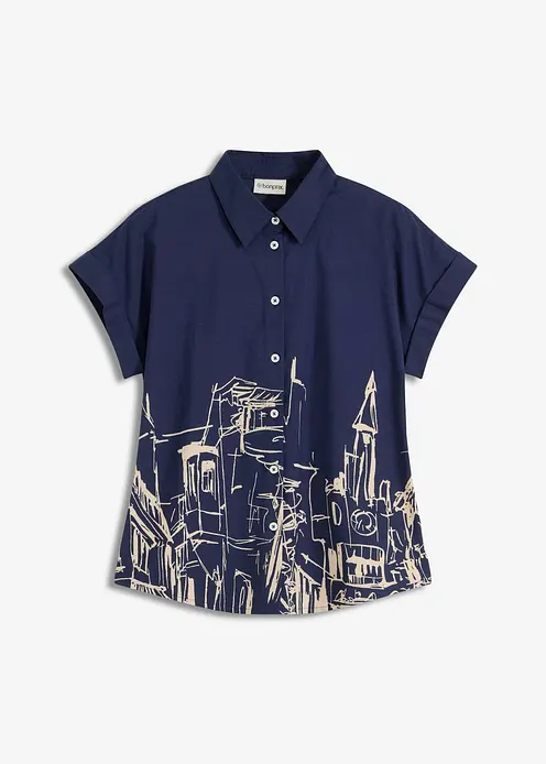 Oversized Popeline Kurzarmbluse aus Baumwolle