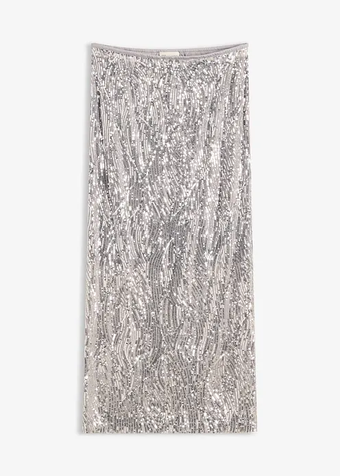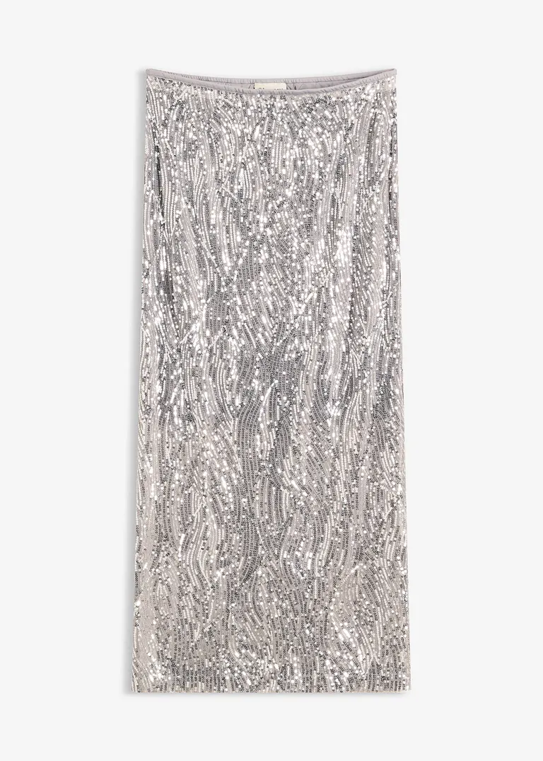 modischer Pailletten-Midirock mit Gummibund. Gefüttert.