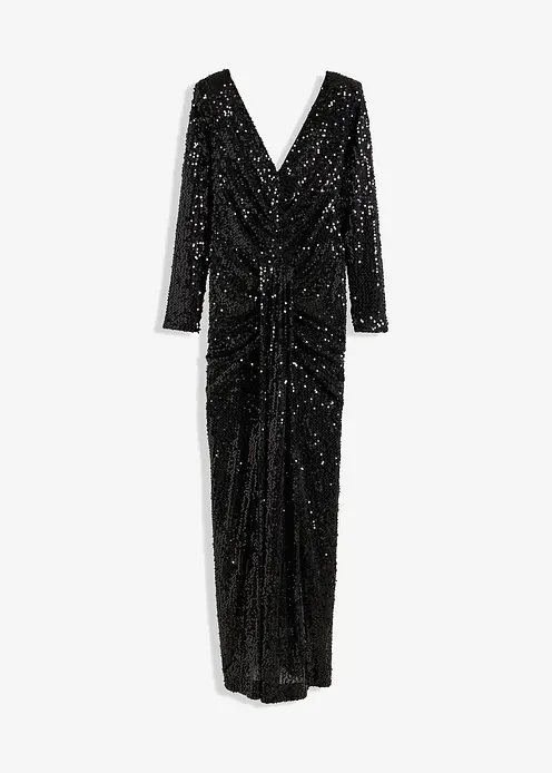 Ein wahrer Eye-Catcher! Paillettenkleid in Maxi-Länge mit Raffungen und Drapierung in der Taille.