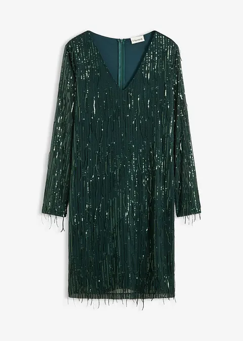 modisches Paillettenkleid mit Pailletten-Fransen und tiefem V-Ausschnitt vorne