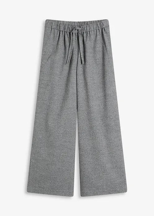 Weit geschnittene Hose in Salz & Pfeffer Optik mit Schnürung am Bund und seitlichen Eingriffstaschen.