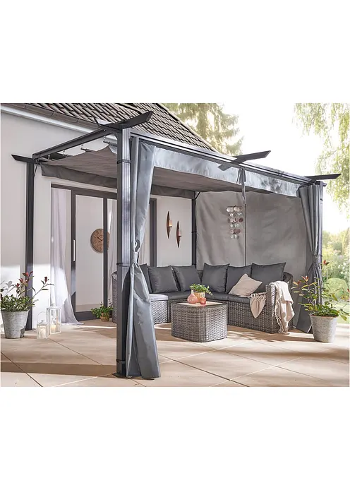 Alugestell, Dach aus Polyester, wasserabweisende PU-Beschichtung. Seitenwände extra bestellbar.