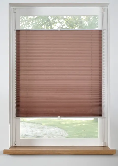 Einfache Montage ohne Bohren und Schrauben: das blickdichte Plissee wird mithilfe von Klemmträgern direkt auf dem Fensterrahmen befestigt. Oben und unten ist jeweils ein Griff mit dem man das Plissee hoch und runter ziehen kann. Bitte beachte, die Farbe des Plissees wirkt verpackt viel farbintensiver als am Fenster selbst.