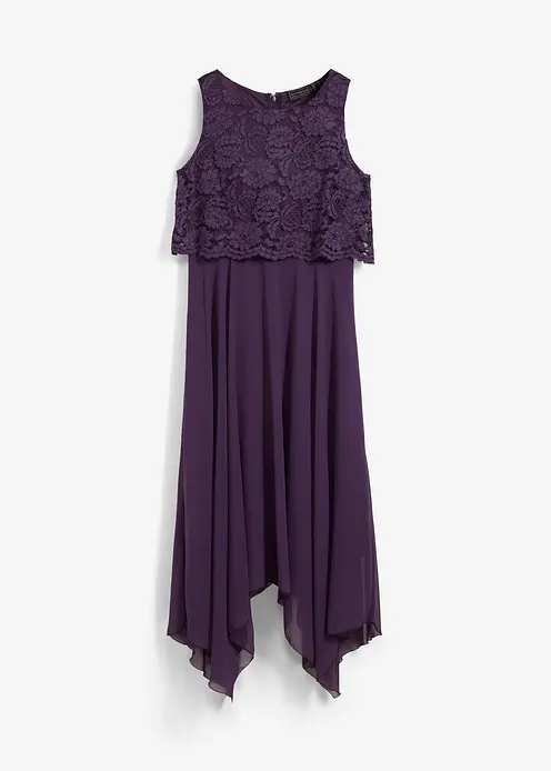 Elegantes Abendkleid mit Spitzenoberteil und Zipfelrock