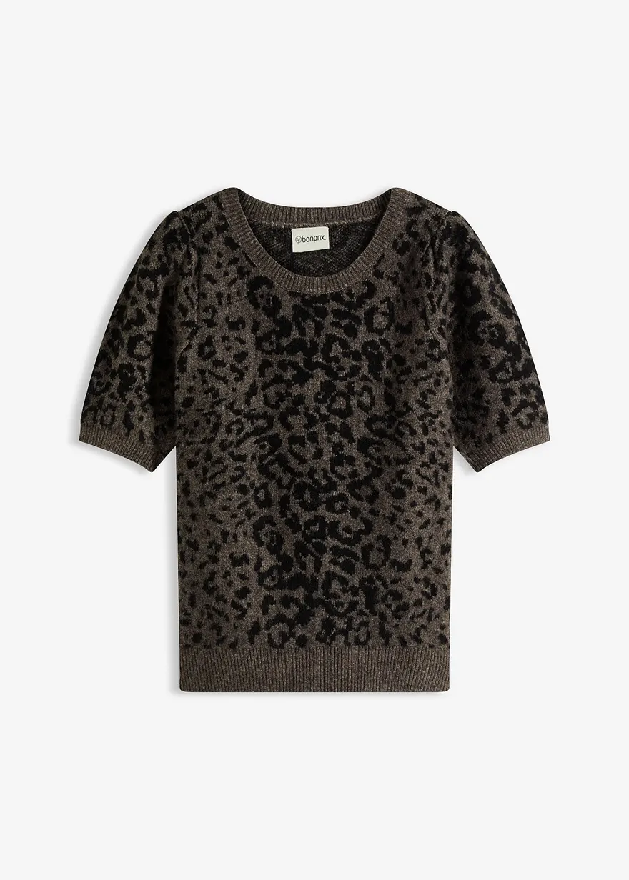 weicher Pullover mit halblangen Puffärmeln und modischem Leoparden-Muster