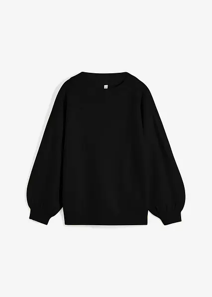 Attraktiver Strickpullover mit hochgeschlossenem Rundhalsausschnitt und modernen Ballonärmeln