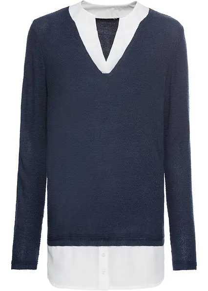 Feinstrickpullover mit Bluseneinsatz