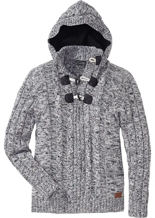 Cooler Kapuzen-Pullover aus Grobstrick mit Stehkragen und Knebelknöpfen