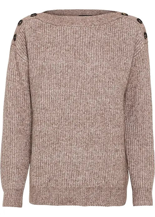Schöner Pullover mit Knöpfen von Bodyflirt. Der Pullover hat einen U-Boot Ausschnitt, der am Ende mit Knöpfen verziert ist. Optische Länge bei Gr. 36/38 ca. 64cm.
