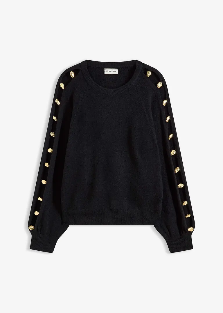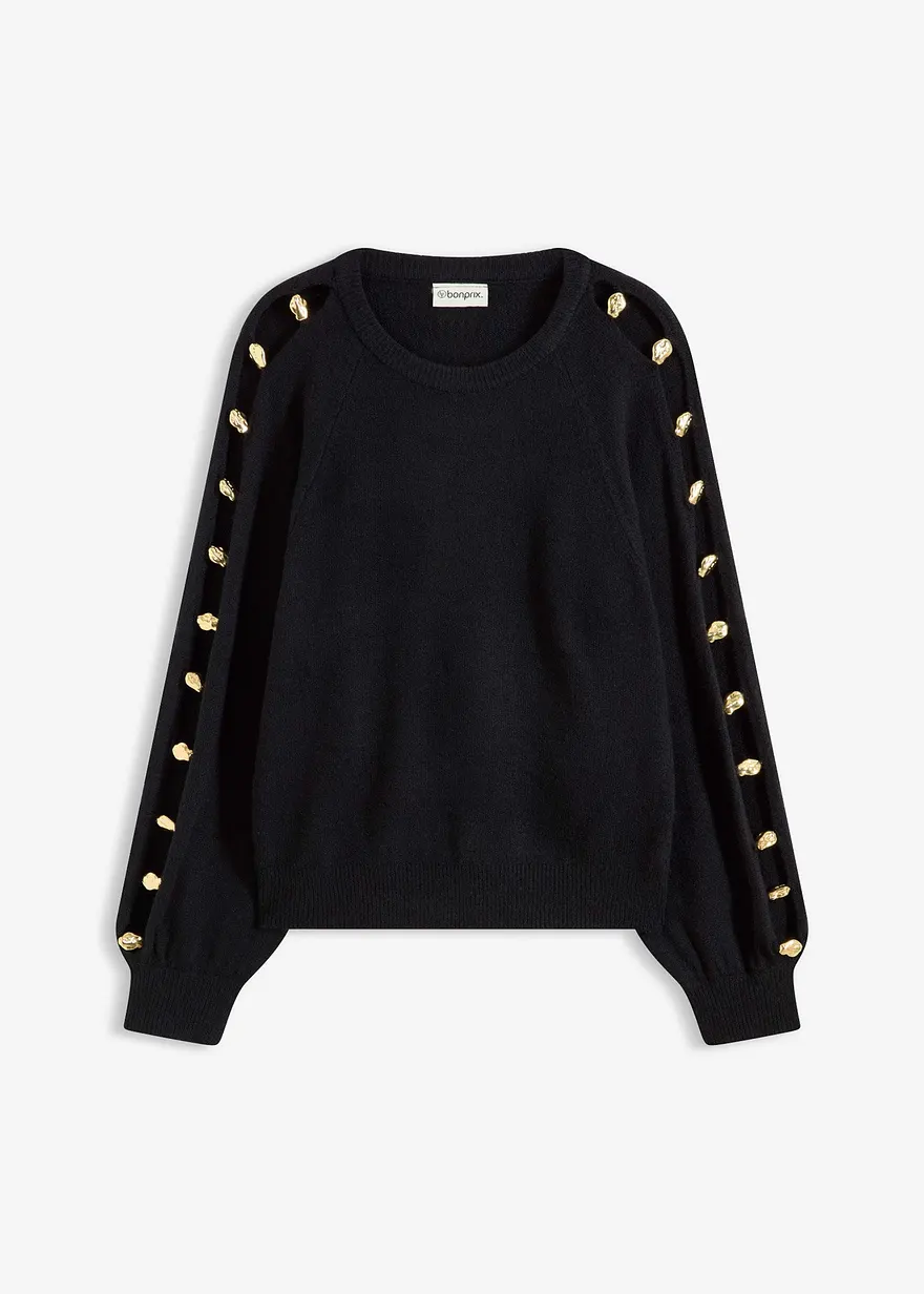Pullover mit Rundhalsausschnitt und langen Ärmeln mit Schlitz und Applikation aus goldfarbenen Metall-Perlen