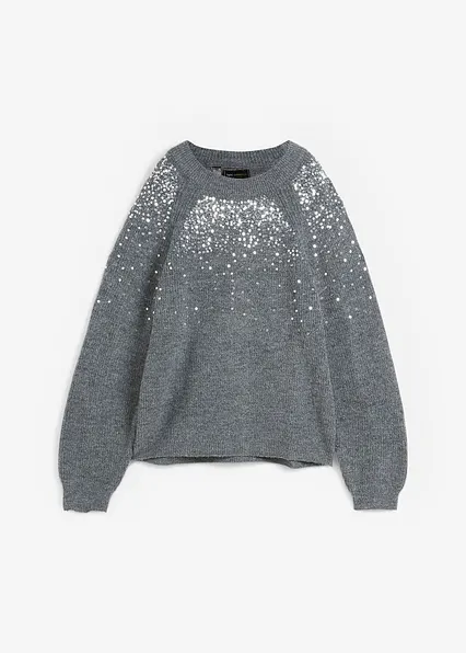 Pullover mit Pailletten in grau im Look von vorne (Totalaufnahme) - bonprix