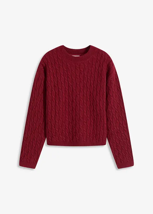 Pullover mit Zopfmuster in rot von vorne - bonprix