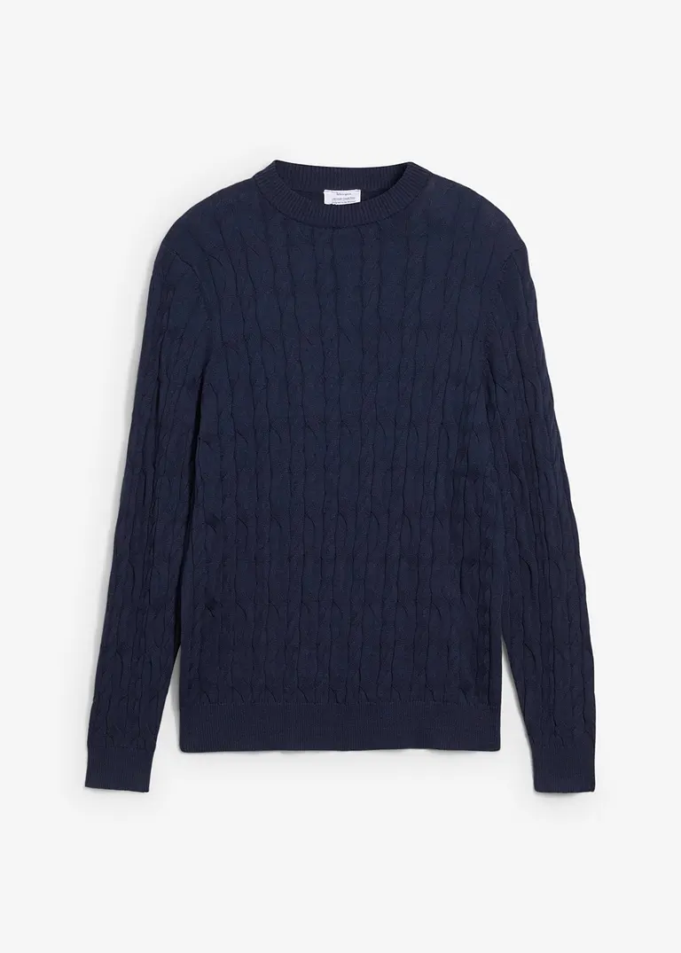 Pullover mit Zopfstrickmuster aus recyclingfähiger Baumwolle