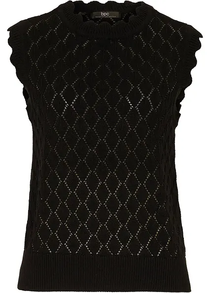 Ajour-Pullunder aus Baumwoll-Mix in schwarz von vorne - bonprix