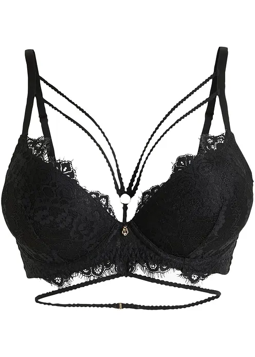 Push-up-BH mit Schmuckdetails in schwarz von vorne - bonprix