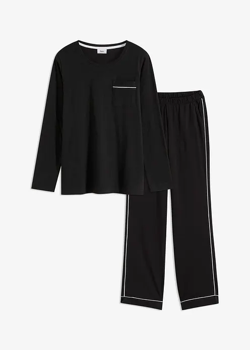 Pyjama aus reiner Baumwolle in schwarz von vorne - bonprix